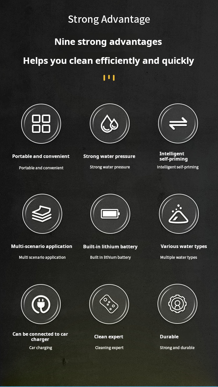这款48V可充电无线高压清洗机让您随时随地体验强劲、便捷的清洁效果 。它设计便捷,性能卓越,无需电源线或固定水管连接即可提供强劲水压。是清洁汽车、自行车、露台、花园家具、窗户和户外设备的理想之选。