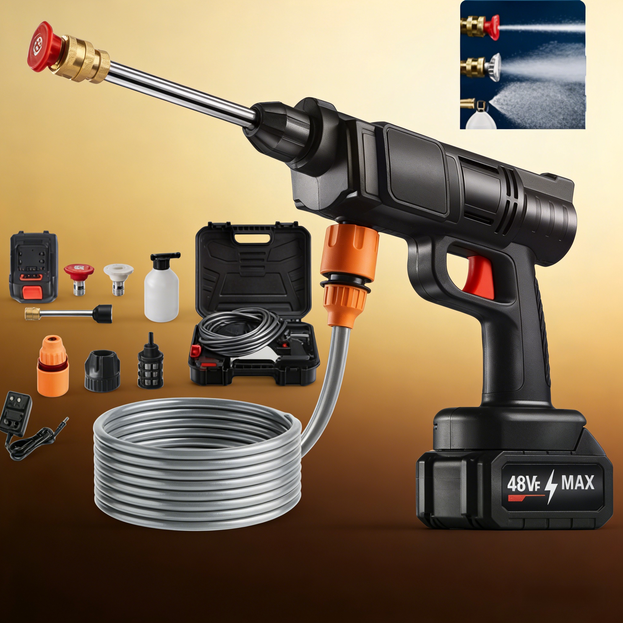 可充电式无线高压清洗机 – 48V 便携式清洁套装